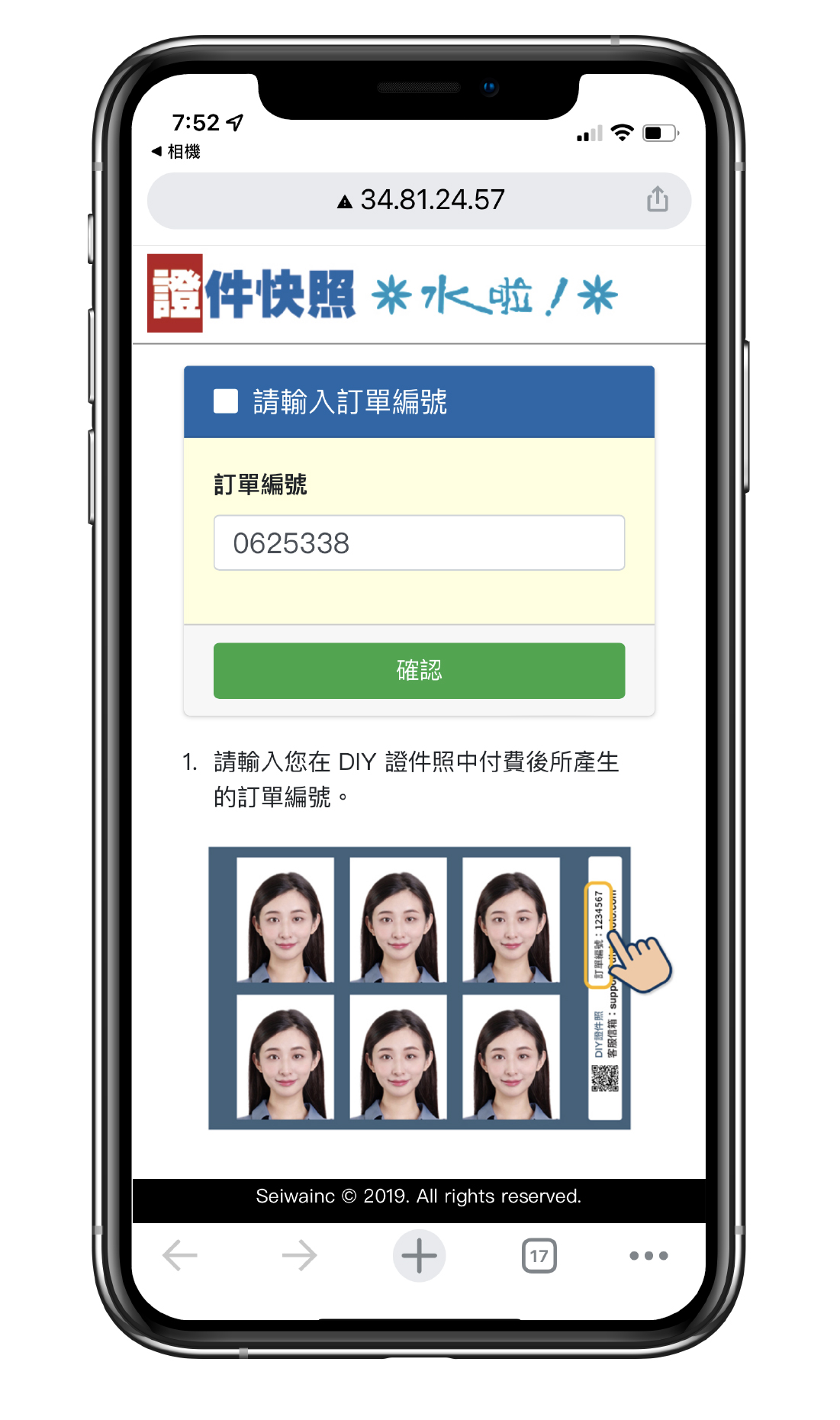 3.手機輸入訂單編號,點擊 「確認」送出。 | |