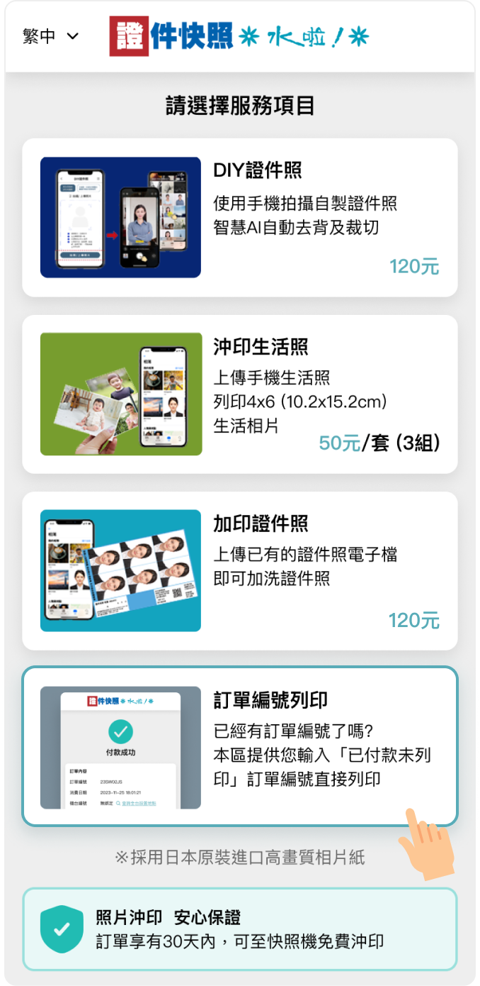 已經有訂單編號了嗎?馬上找機台列印您的照片!