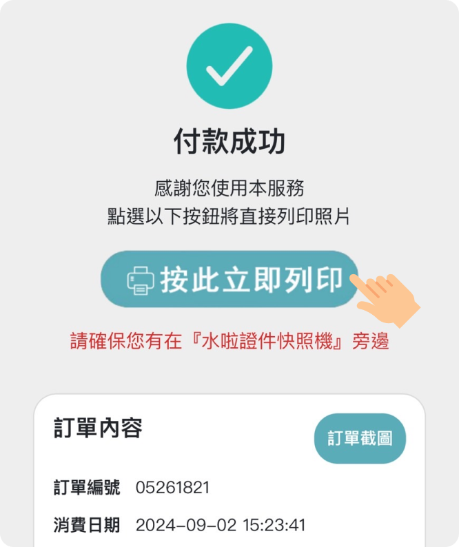5. 完成線上支付,並點選「按此即可立即列印」即可列印