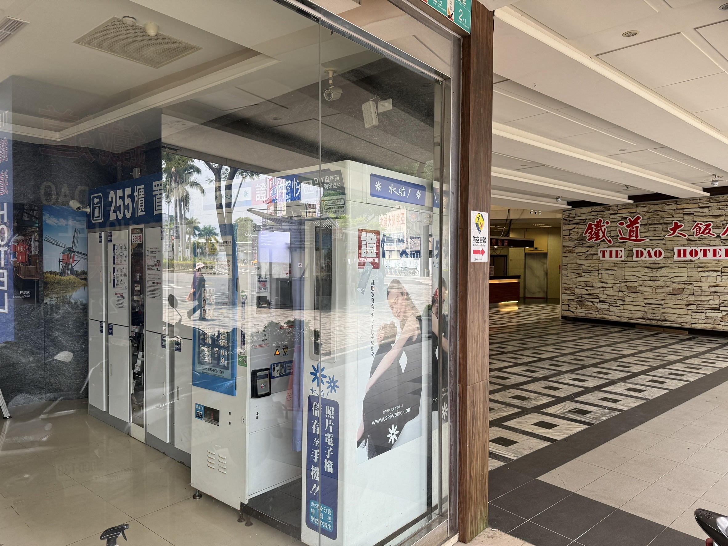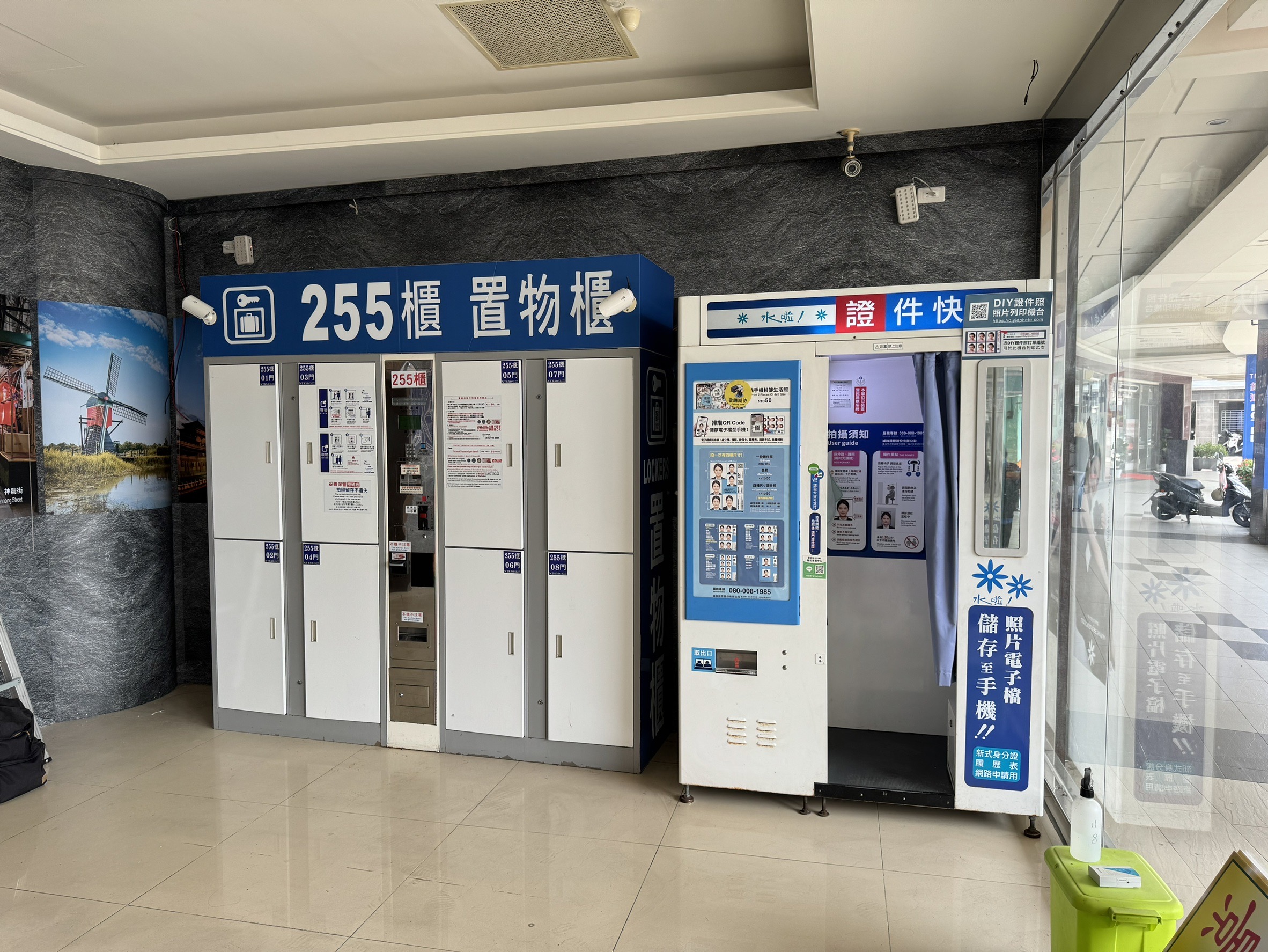 正門左側,無人商店區(255號置物櫃旁)